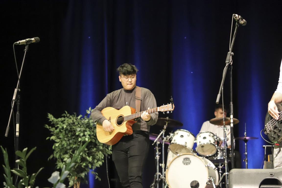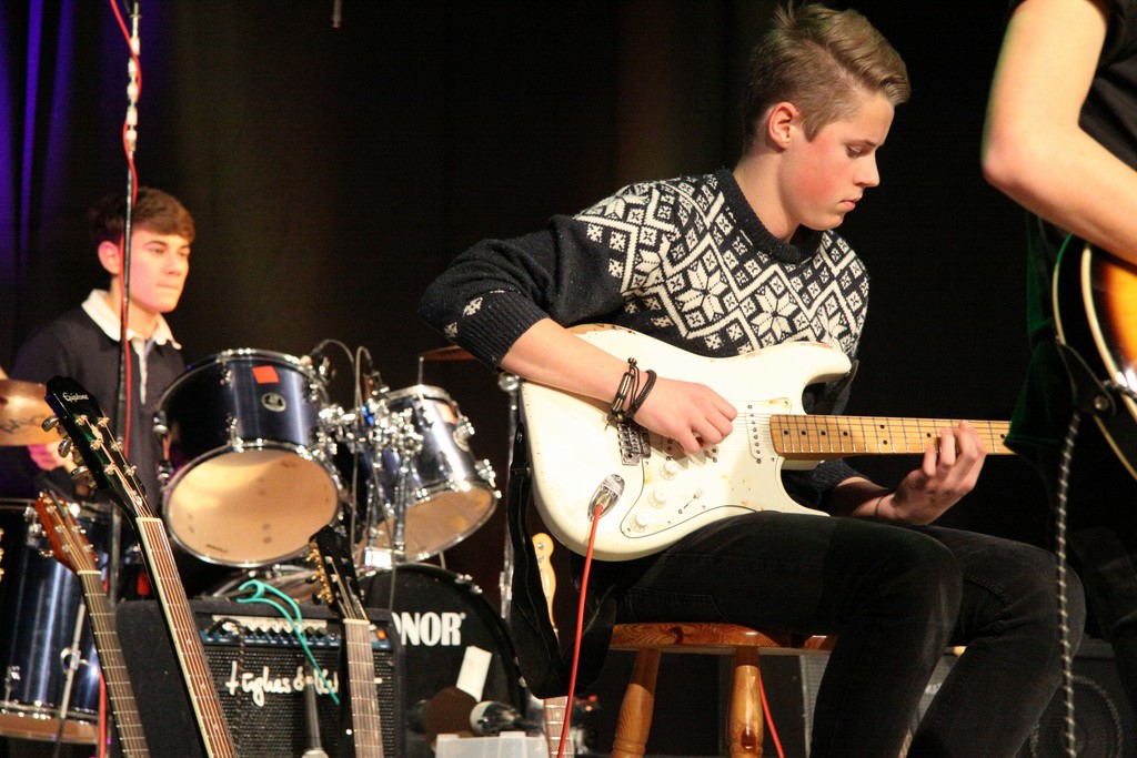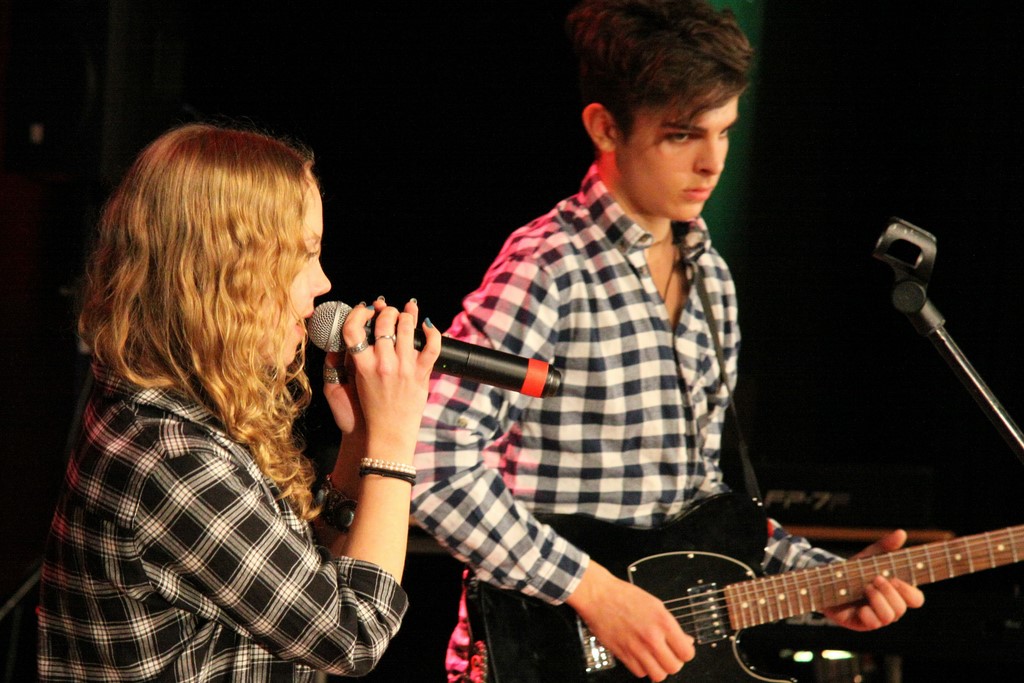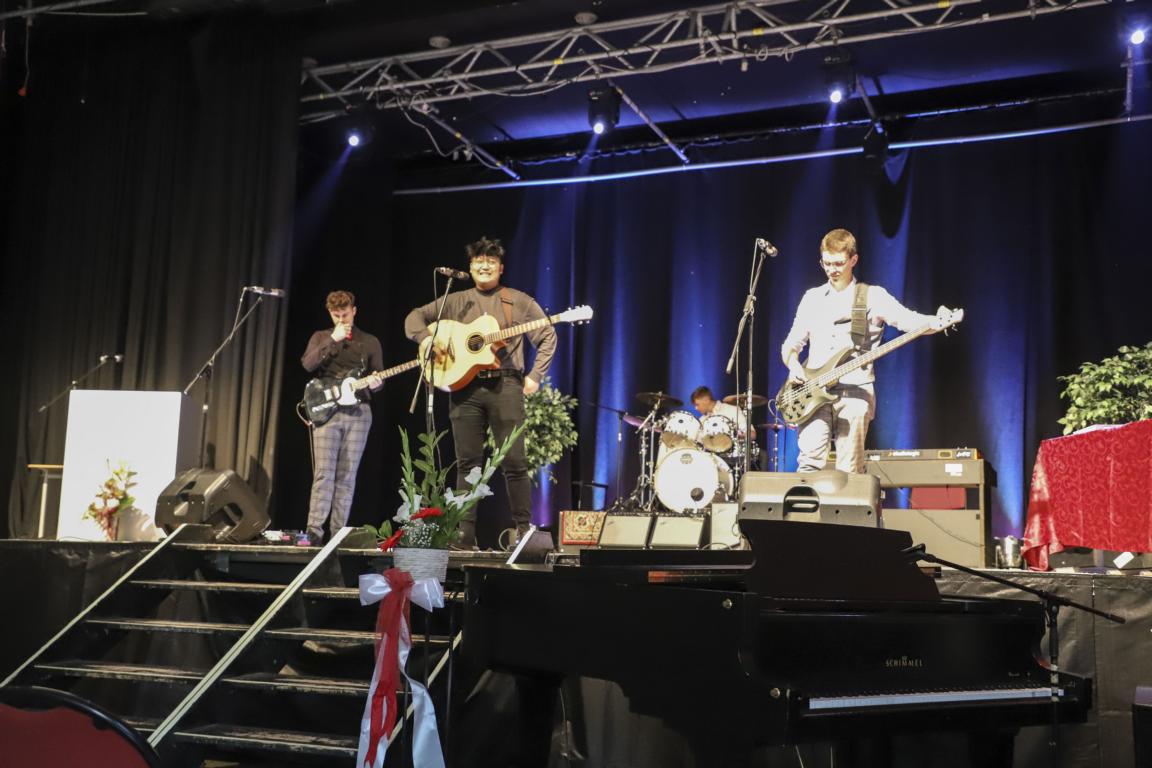 Begleitet wurde der große Chor von Schülerinnen und Schülern des 13. Jahrgangs (dr – David Nguyen, git. – Sonja Beckmann, git. – Charlotte Walther, bass – Klara Khalaf). Unterstützt wurden sie von unseren hervorragenden Band-Coaches Elias Zander und Nele Kleefeld, die vor wenigen Jahren noch selbst auf der MBO-Bühne standen. Ein großer Dank geht an Herrn Thießen, der diese Fahrt mit begleitet und unterstützt hat und an unseren Förderverein, der die Kosten für die Probenräume übernommen hat.