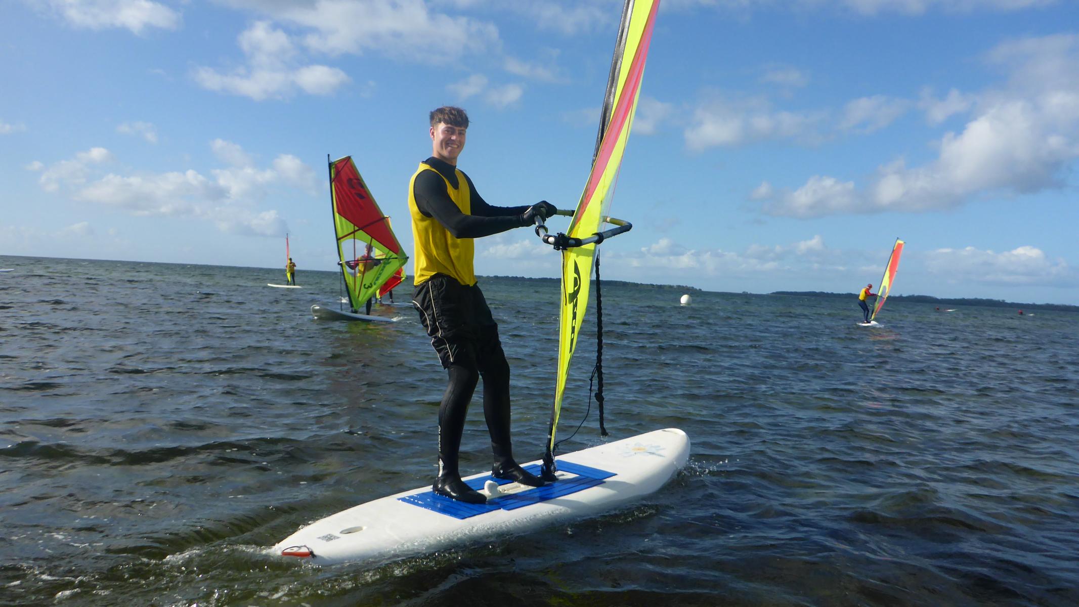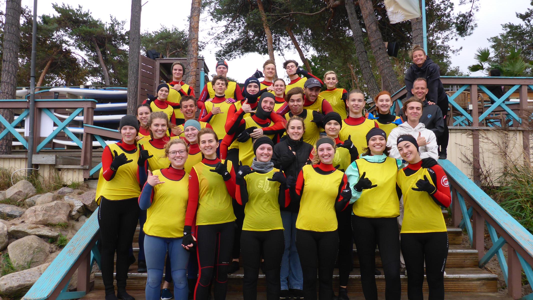 27 Schüler*innen aus dem 13. Jahrgang haben an der Grundkursfahrt Windsurfen in San Pepelone an der Ostsee unter der Leitung von Herrn Meinhart teilgenommen. Bei abwechslungsreichem Wetter und sehr anspruchsvollen Windbedingungen haben die Teilnehmer*innen mit großem Einsatz und Engagement die Grundtechniken im Windsurfen erlernt. Alle Schüler*innen haben den VDWS-Grundschein erworben.
