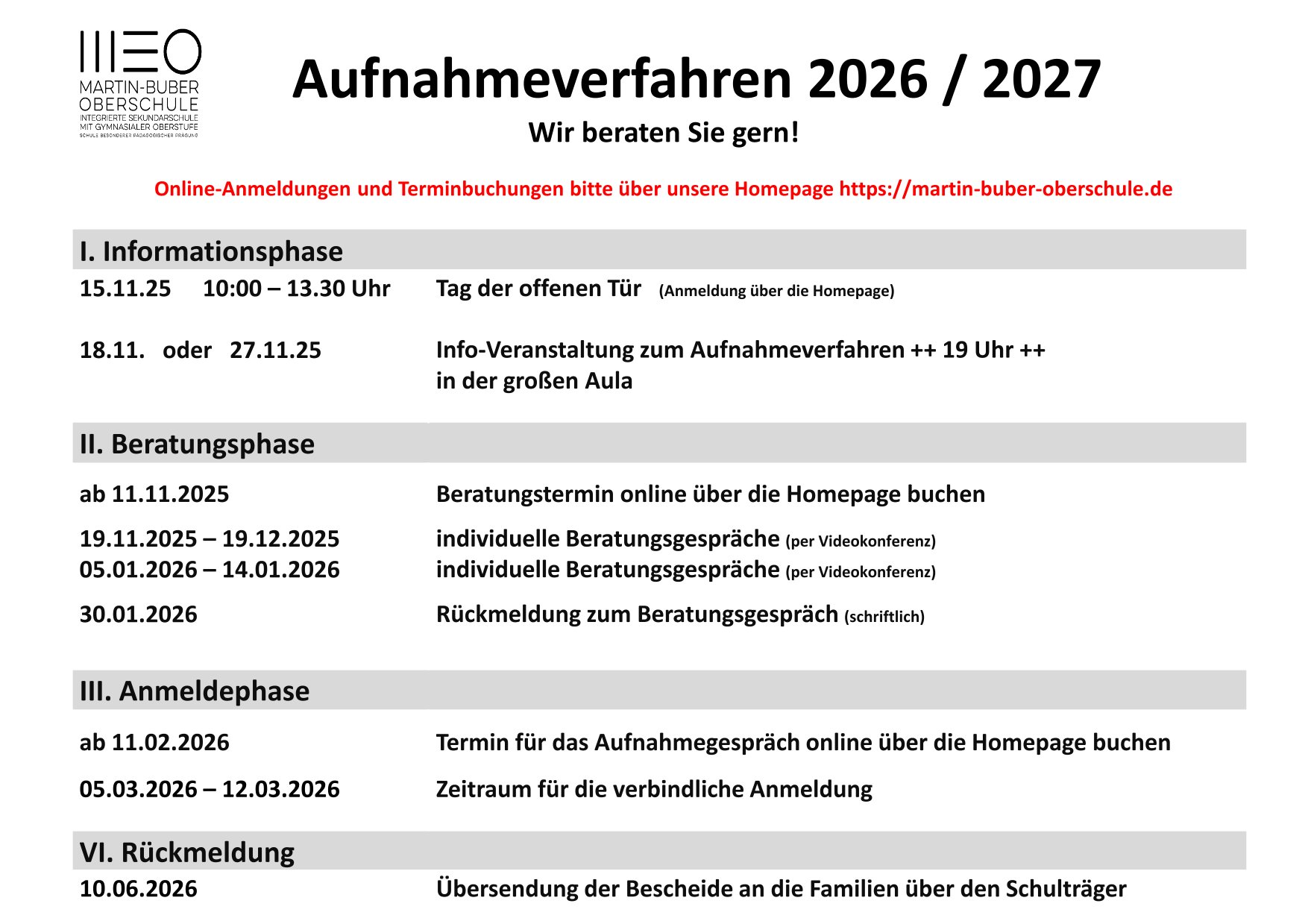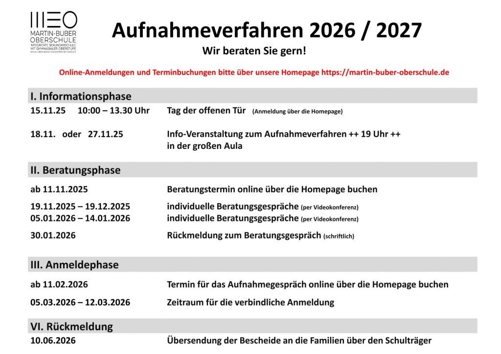 Wenn Sie die vorgeschlagenen Termine für das Anmeldeverfahren für den zukünftigen 7. Jahrgang wahrnehmen, sind Sie ausführlich informiert und gut vorbereitet.